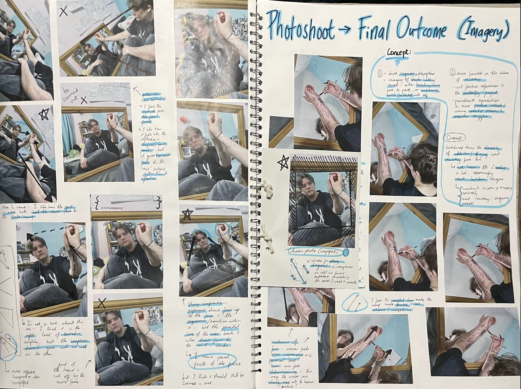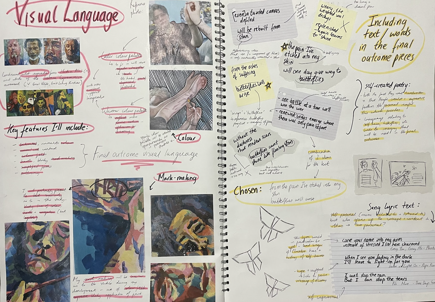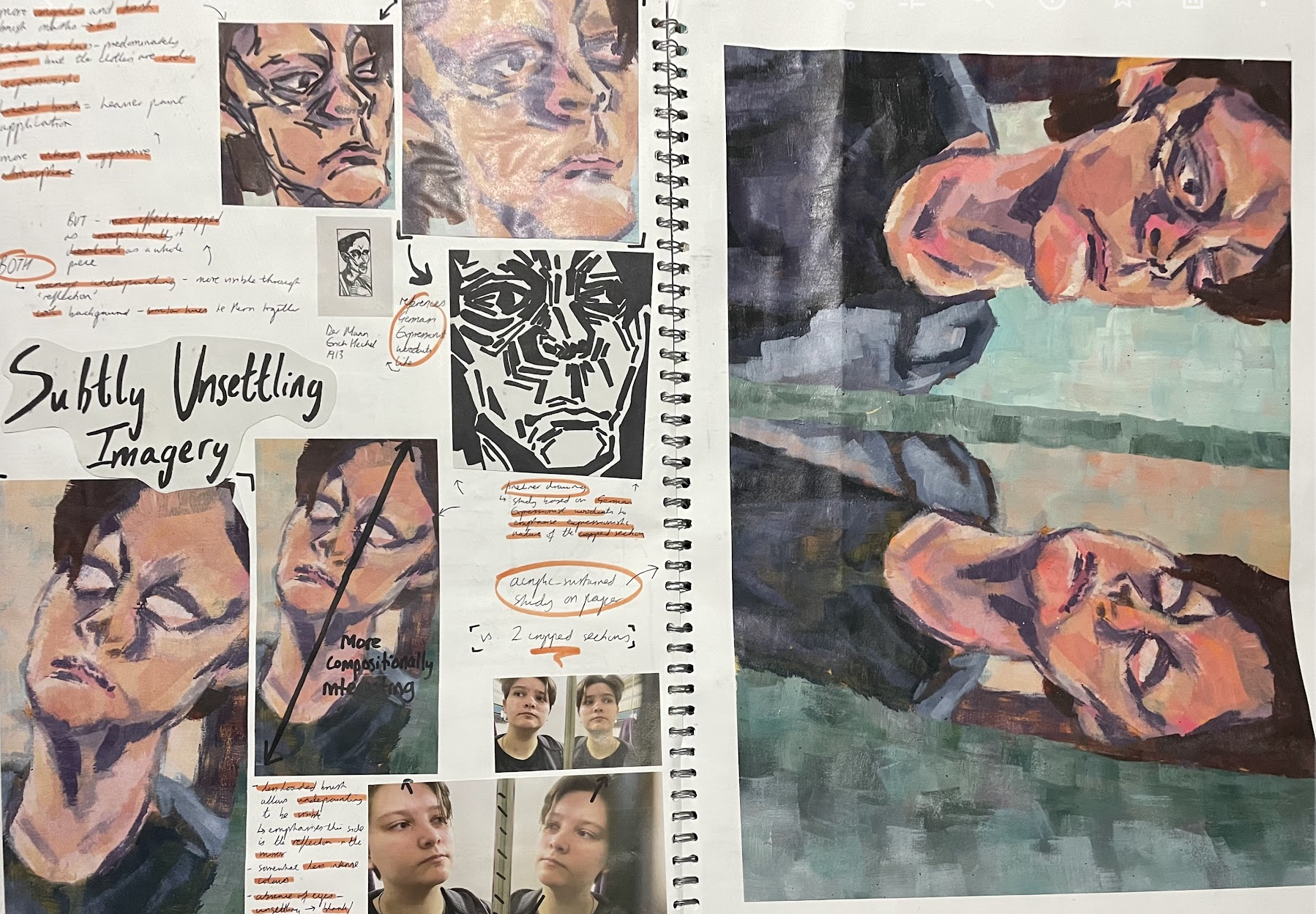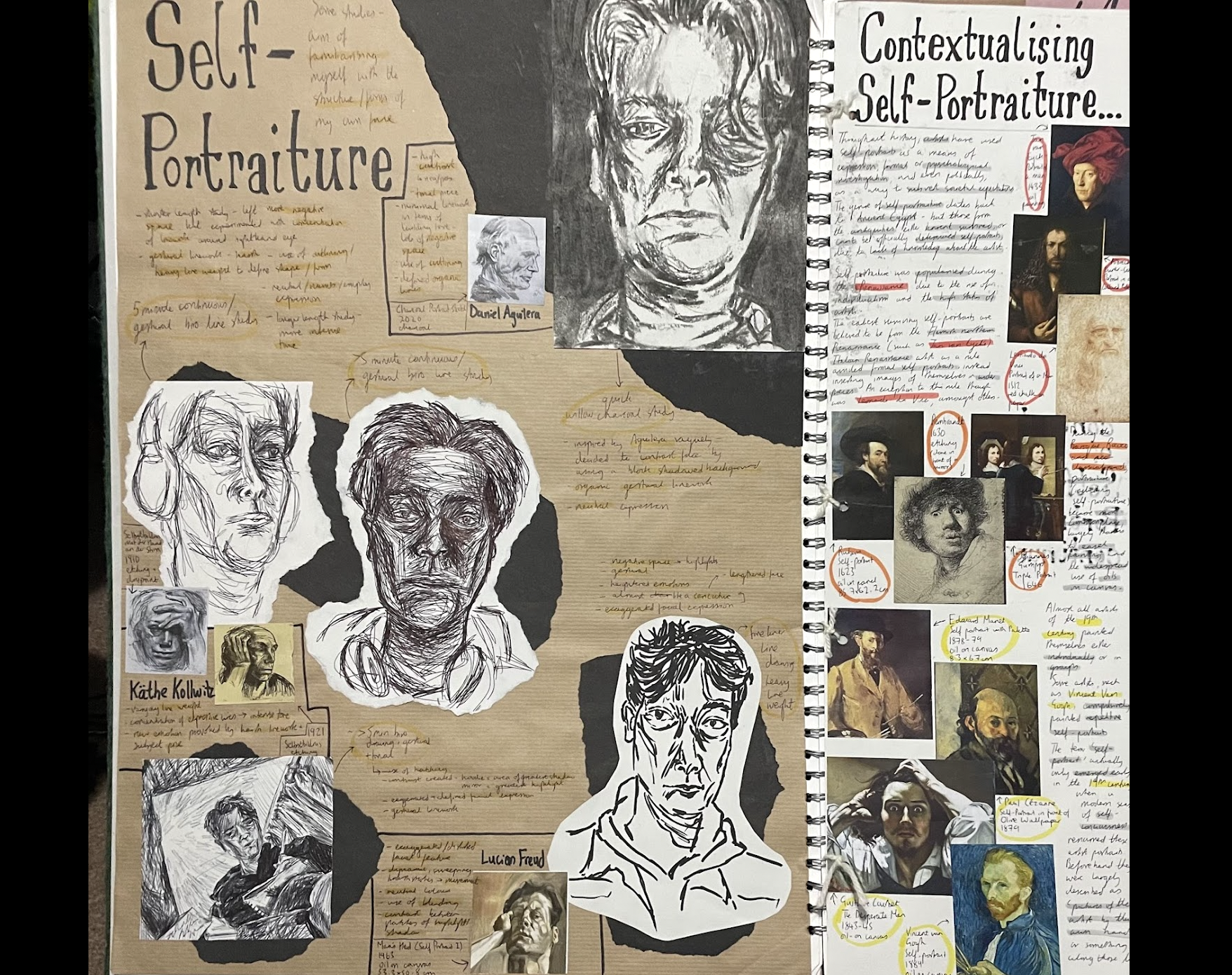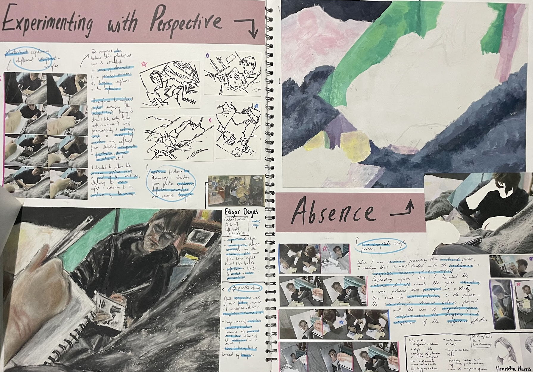 A lot of my creative development took place during my Fine Art A Level course. After trialling lots of different mediums and artistic processes, this culminated in two main portfolios.